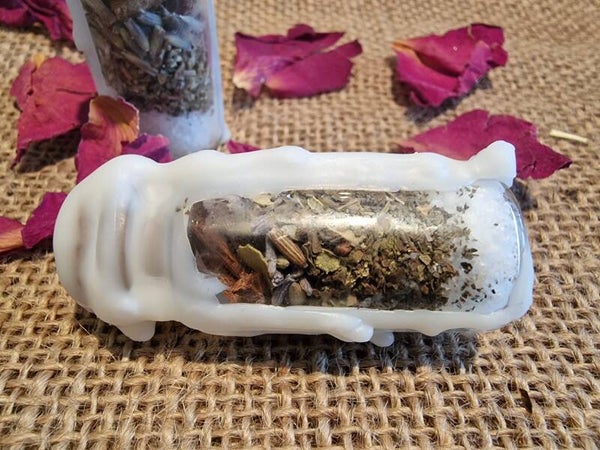 A Spell jar is a jar that is encased with a spell. The jar contains a variety of ingredients ranging from herbs, flowers, salts and other items. The spell jars are carried for protection and/or as good luck charms