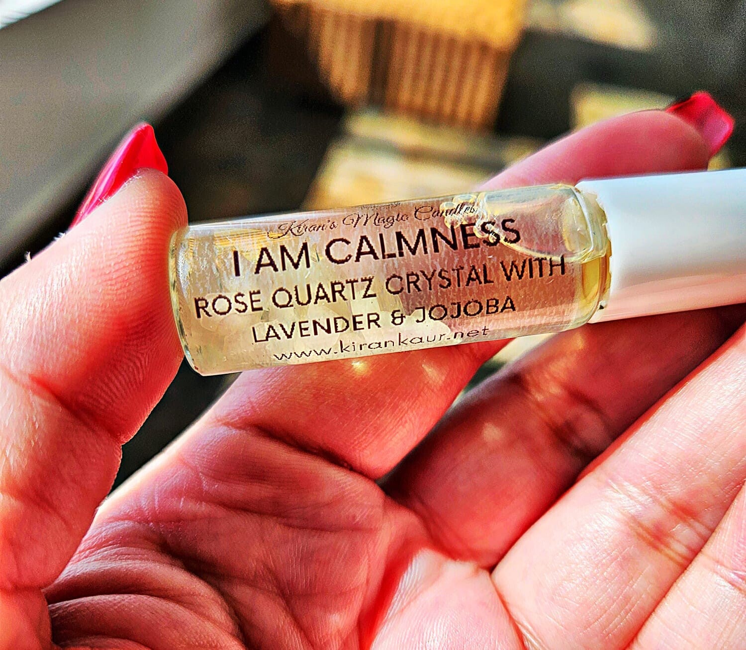 The I AM CALMNESS Roller is charged with Rose Quartz crystal chips that are infused with Lavender and Jojoba oils to encourage you to relax, slow down and practice self love.