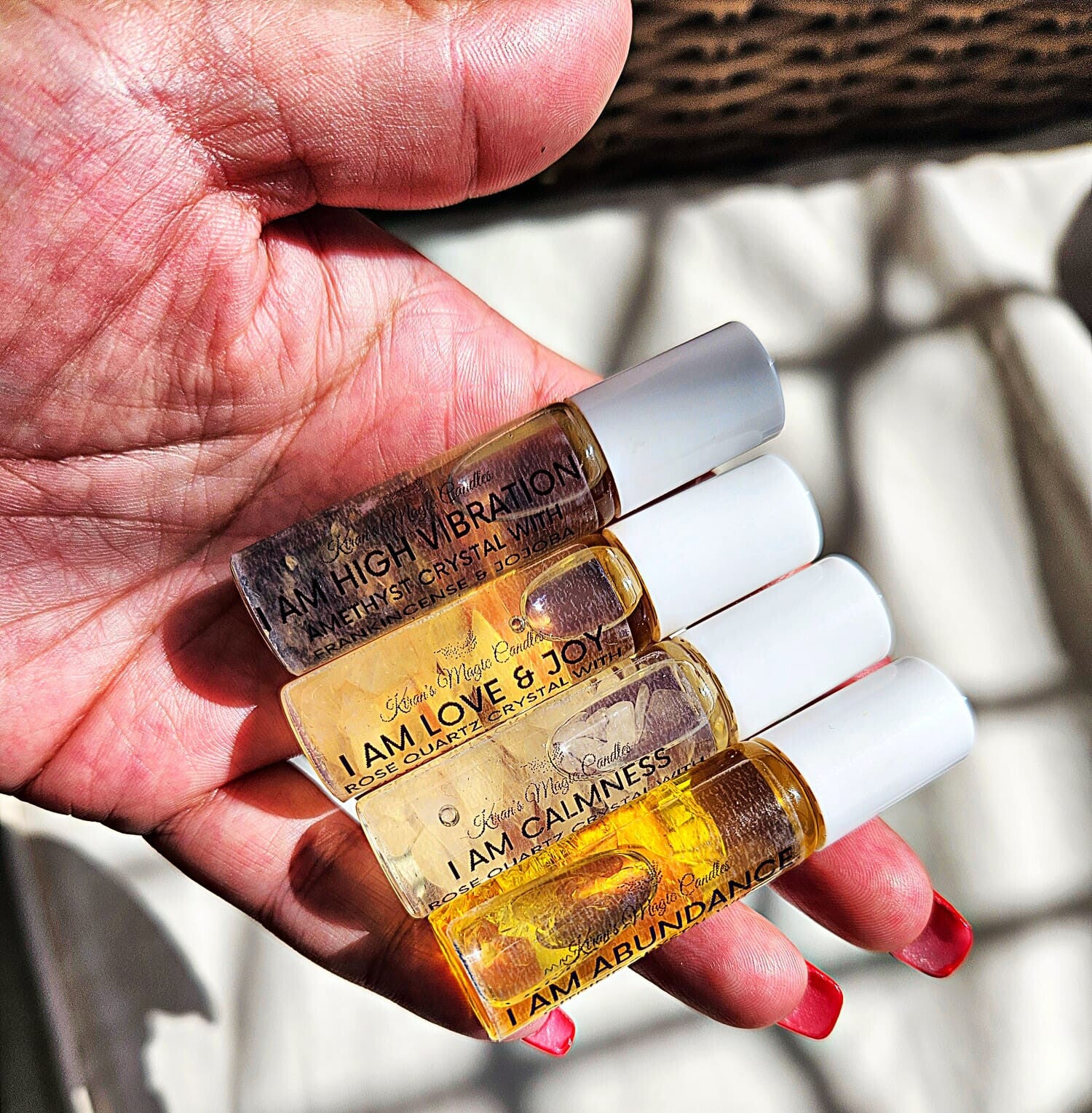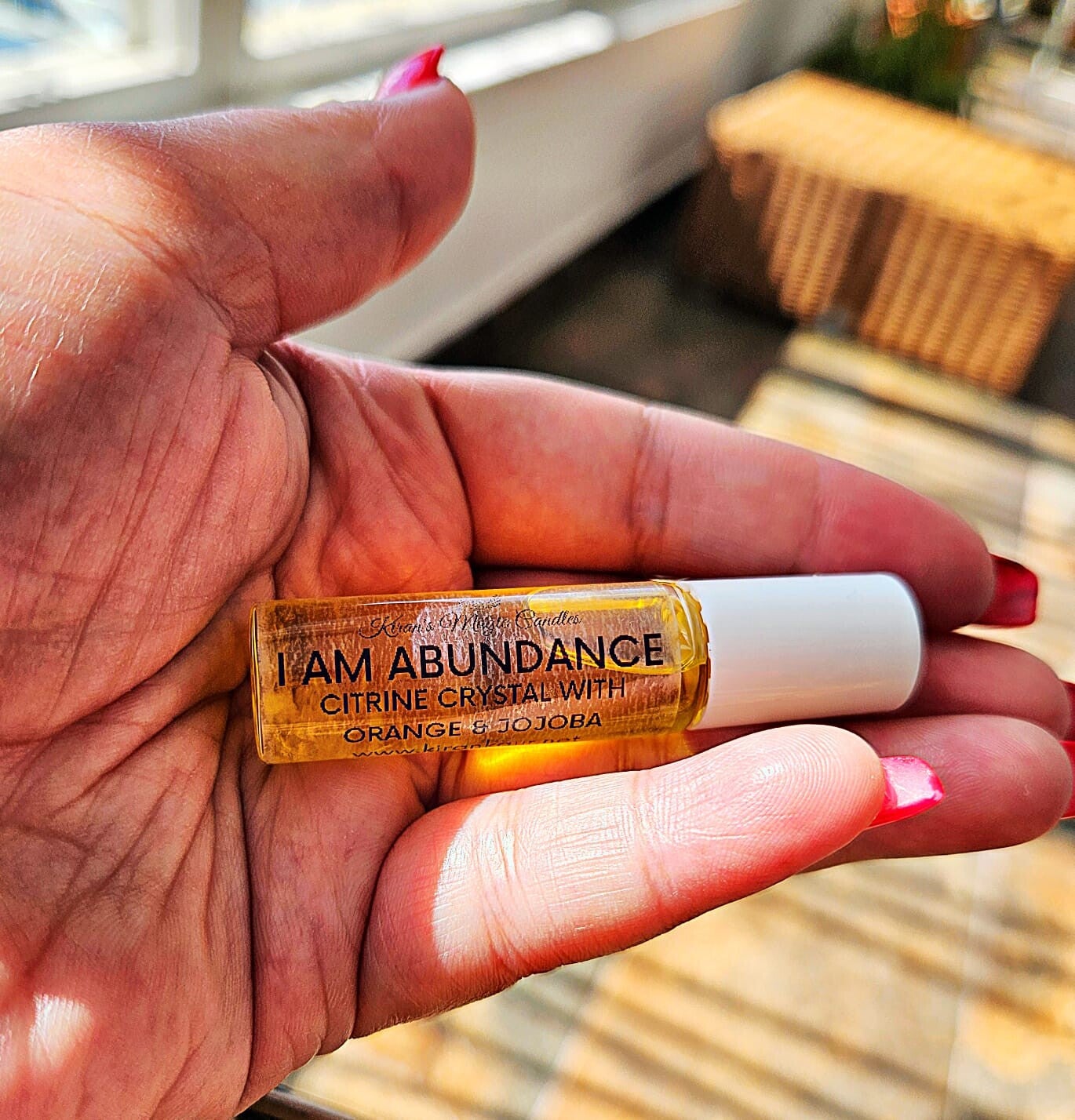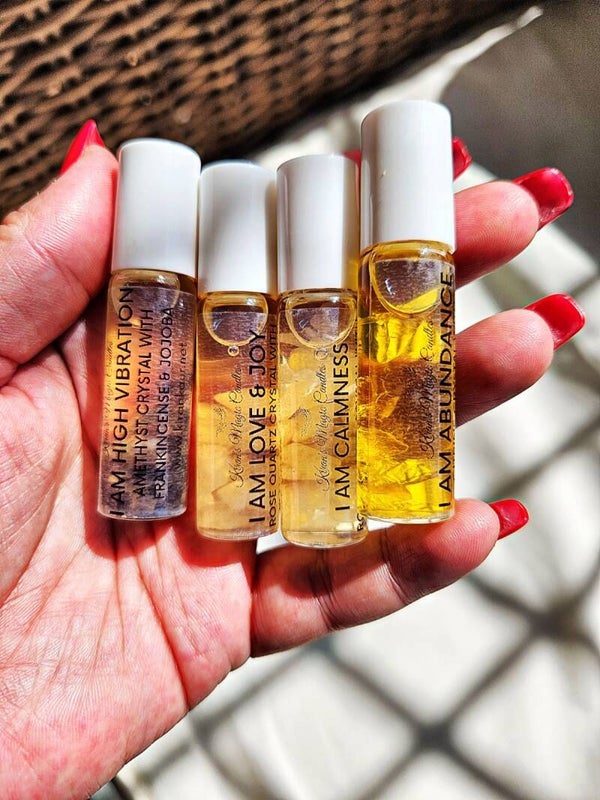 The I AM ABUNDANCE Roller is charged with citrine crystal chips that are infused with Orange and Jojoba oils to attract the luxury and abundant feelings and emotions.