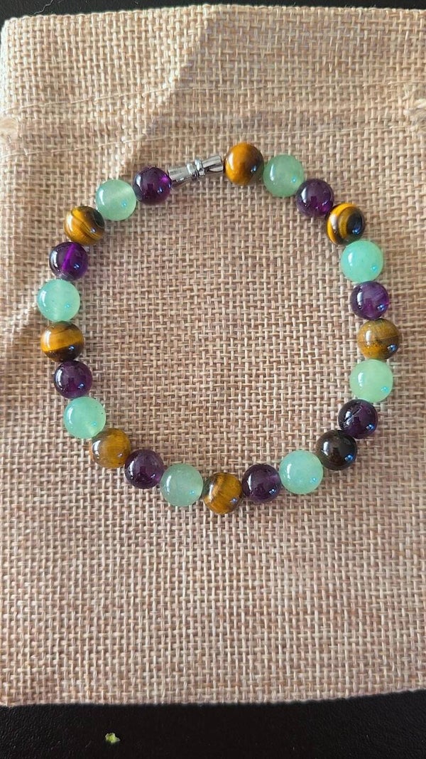 This conbination of the Amethyst, Green Aventurine and Tiger's Eye crystal bracelet is suitable for those who wish to attract an abundance of wealth with love; amplify and sustaining the wealth.